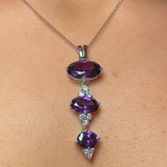 • Sterling Silver Yo Jewels Oval Amethyst & Cz Drop Necklace