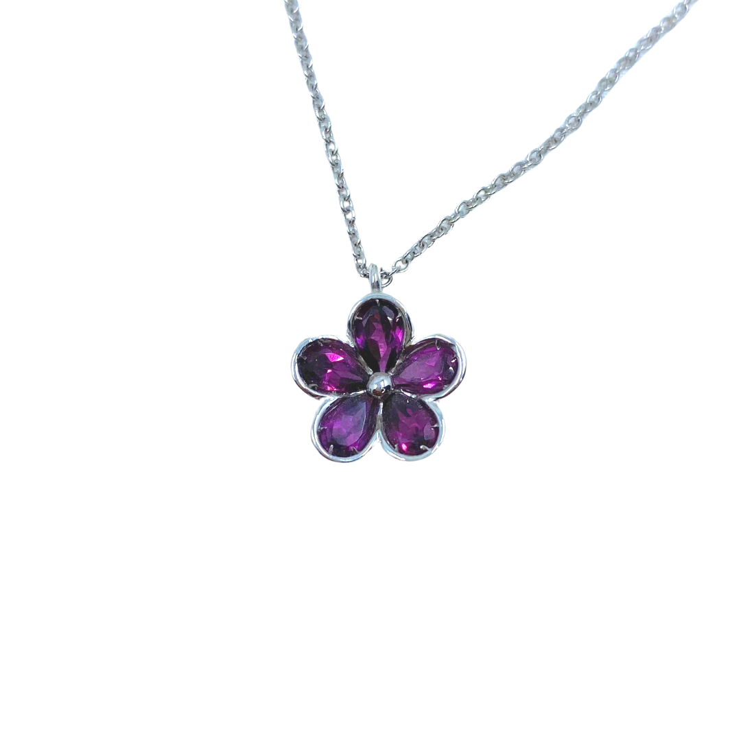 18ct White Gold Flower Necklace. It is 18ct Gold Hallmarked.