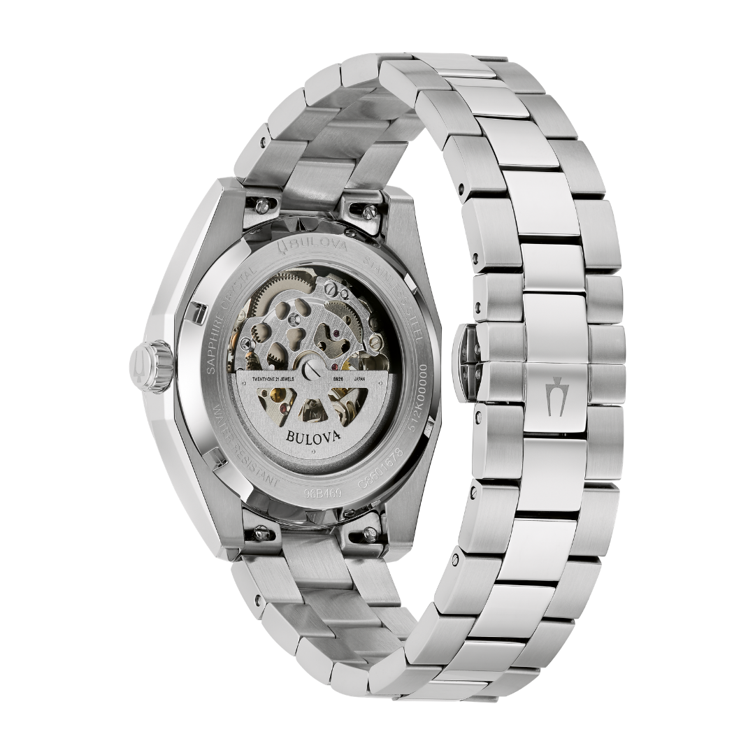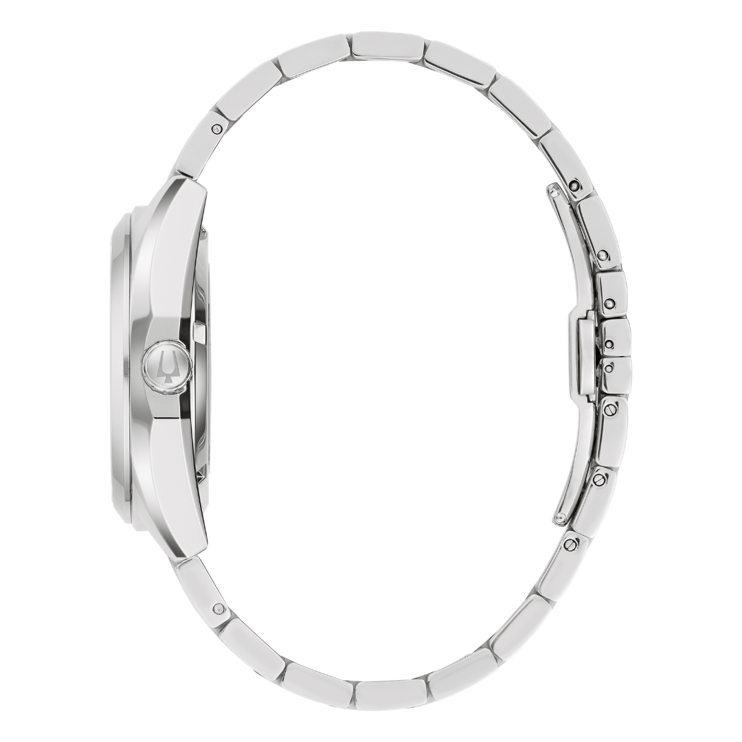 The Bulova Surveyor 39mm Automatic offers a refined, contemporary look with its cool light blue dial and clean stainless steel finish. The silver-tone case and matching bracelet create a versatile aesthetic that works effortlessly from everyday wear to smarter occasions, while the deployment clasp with push buttons ensures a secure and comfortable fit.