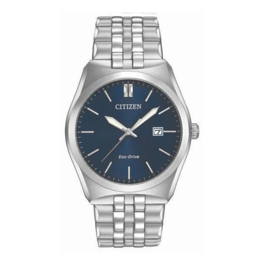 The byword is versatility for this handsome 3-hand Men’s Bracelet watch crafted in stainless steel. Details include a sophisticated deep blue dial and a date window perfect for the every day businessman. Featuring Eco-Drive technology – powered by light, any light. Never needs a battery.