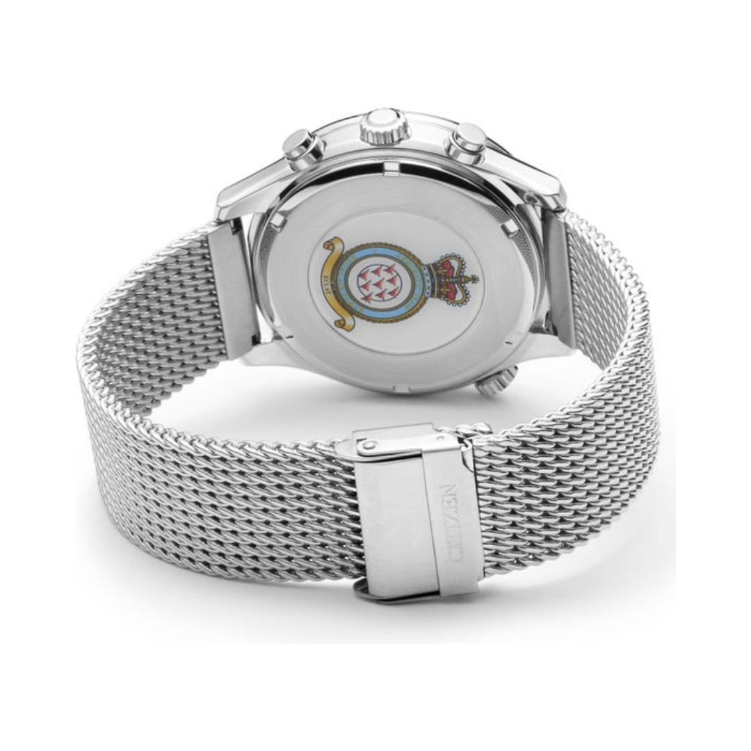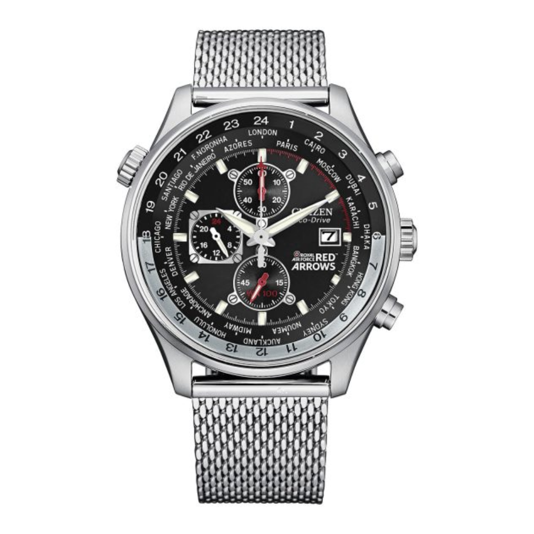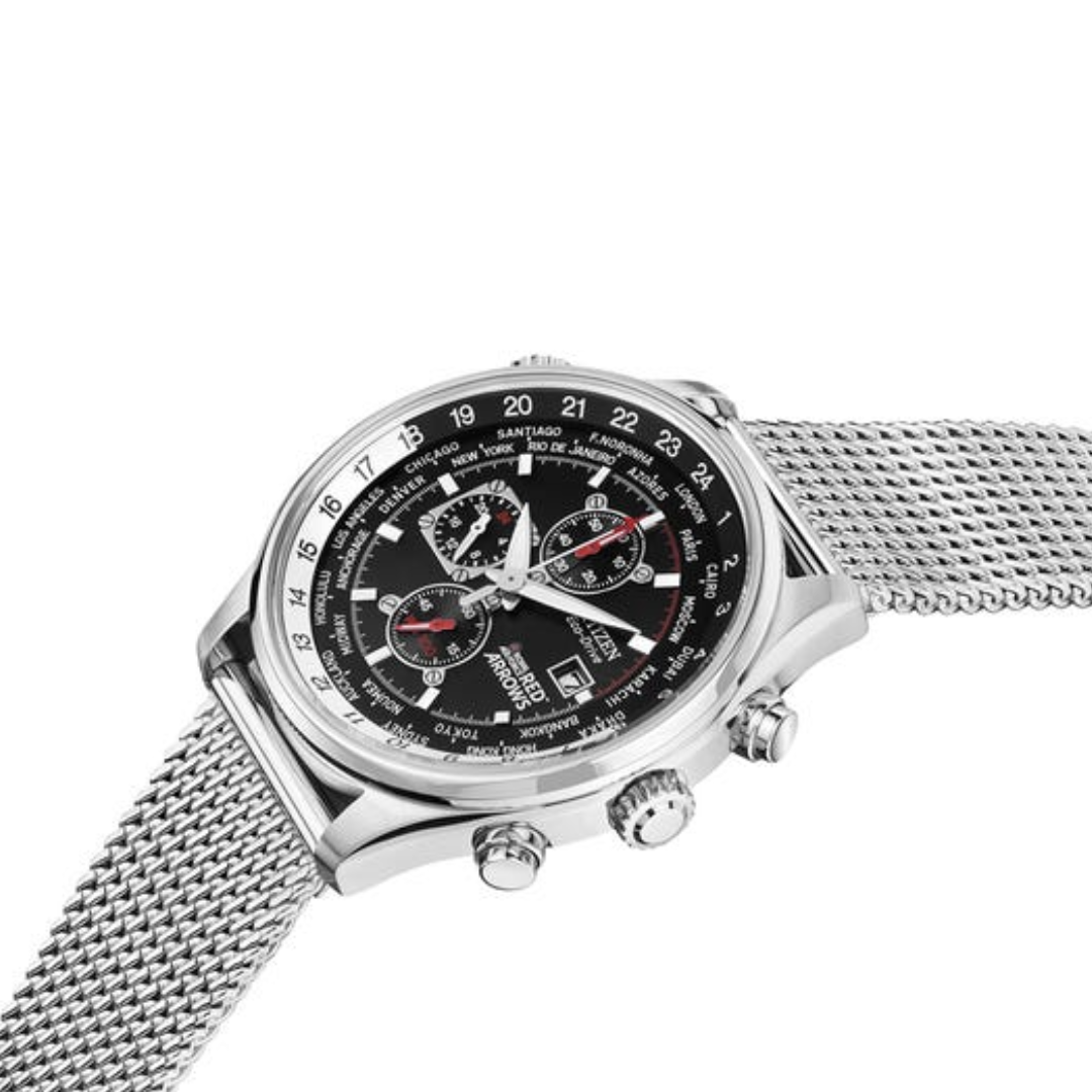 Citizen Mens Eco Drive Red Arrows Steel Mesh Bracelet Black Dial Chronograph Watch