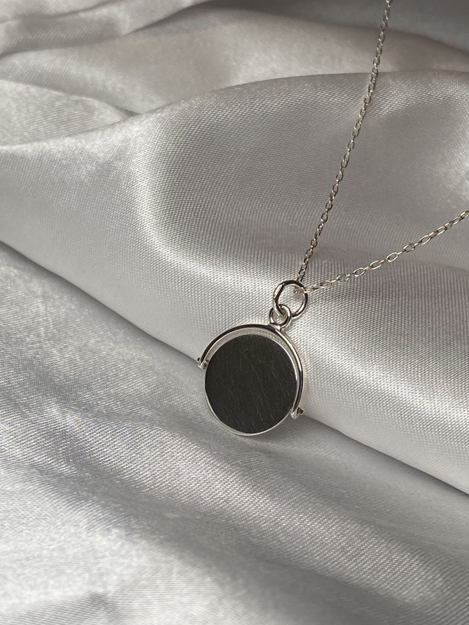 Sterling Silver Plain Disc Pendant with a rotating feature, simply flip the disc to whichever side you want facing outwards. This pendant comes with a standard 18 inch chain.